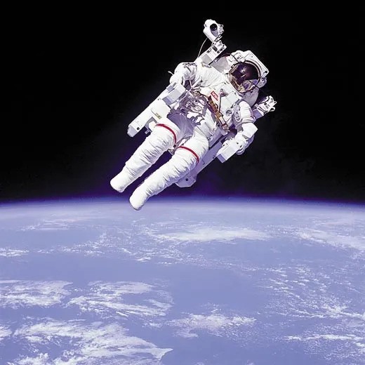 -- Spacewalk, 1984 Bruce McCandless II ventured more than 300 feet from space shuttle Challenger in his jet-powered Manned Maneuvering Unit. The first untethered spacewalk in Earth orbit. NASA
